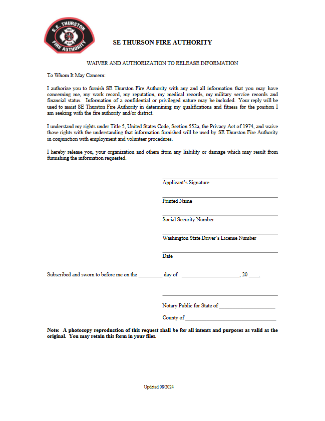 Your dedication, your commitment, and your desire to contribute to the safety and well-being of our beloved community can be the driving force behind the next chapter of SE Thurston Fire Authority. Join us as we continue to write the story of service, courage, and community excellence.